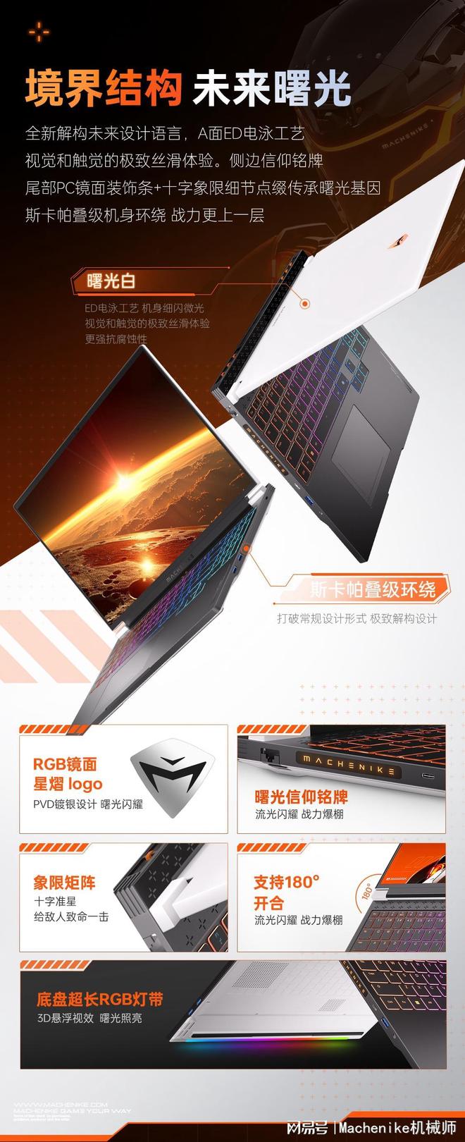 从300Hz星幻屏的极致流畅,到Zen4处理器的狂暴性能,再到96GB内存的扩展能力,机械师全新曙光16 Pro几乎在每一个电竞关键维度都做到了极致。再加上其ED电泳工艺的耐用性和科幻光效的视觉冲击,这款笔记本不仅是一台性能怪兽,更是一件电竞美学的艺术品。