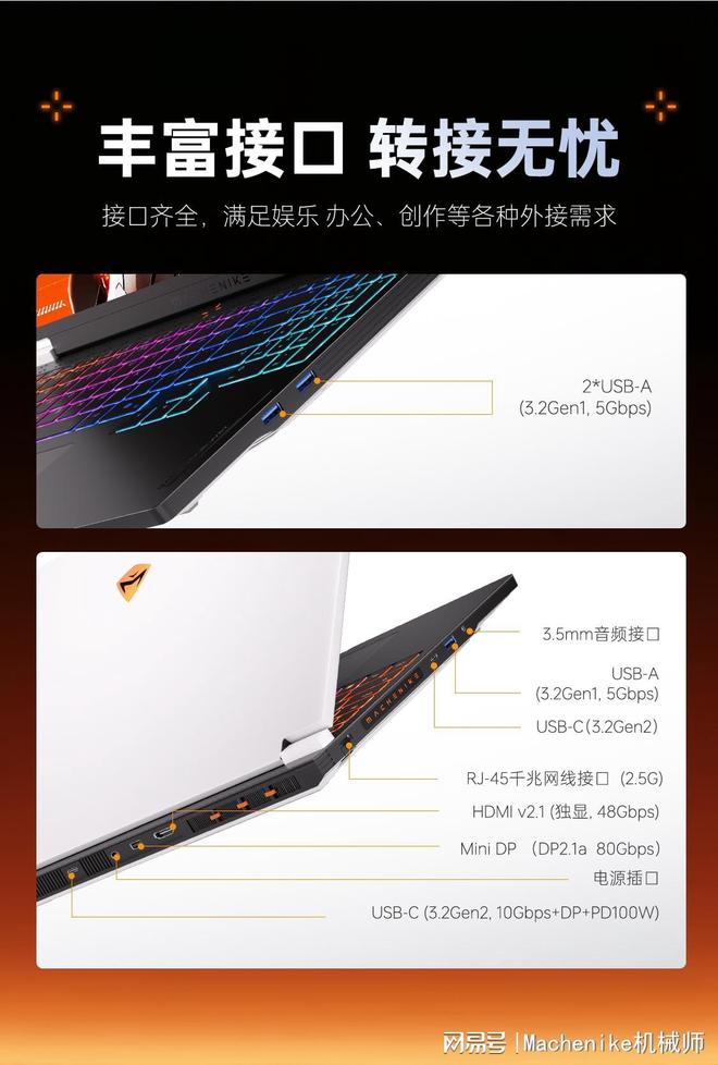 除了性能,机械师全新曙光16 Pro在外观设计上也下足了功夫。其A面采用ED电泳工艺,不仅具备出色的抗指纹特性,还通过0.8mm微磨砂纹理提升了触控手感,避免游戏激烈操作时的打滑问题。