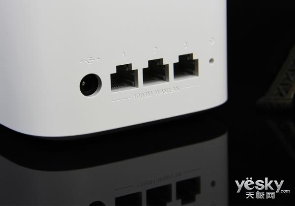 路由器背面的接口设计同样简洁,1个DC电源接口和3个千兆WAN/LAN接口,支持网口盲插。